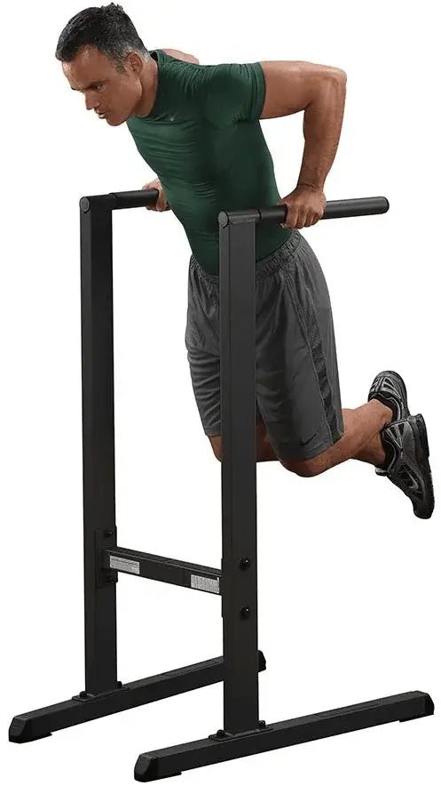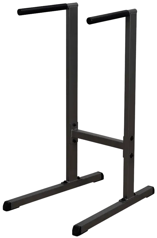 Build awesome shoulders, thicker delts, and killer triceps on our freestanding Dip Station. This upper body developer gets its stability from the wide and extended base that eliminates rocking. The 2″x3″ heavy-gauge steel uprights are perfectly angled for all size users. Oversize 1 3/4″ bars with extra-thick and slip-proof rubber grips provide excellent comfort and allow multiple hand grip positions. Ideal for home and commercial use.