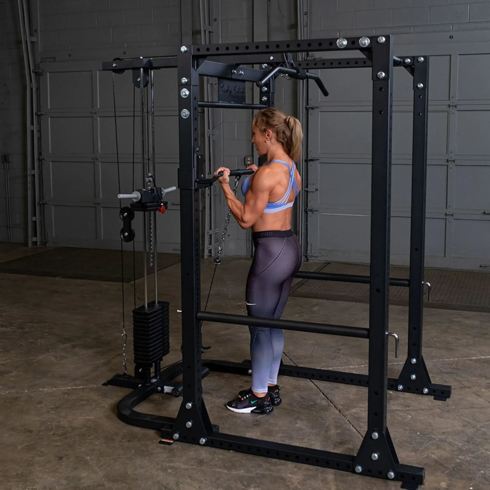 Transform the Body-Solid GPR400 Power Rack into a complete home gym with the GLA400 Lat Attachment. The GLA400 allows users to perform high and low pulley exercises including lat pulldowns, rows, biceps curls, shrugs and more in the comfort and stability of a power rack. Unique design allows the GLA400 Lat Attachment to fit into the GPR400 without requiring additional space or clearance around the rack. The GLA400 is a plate-loaded attachment allowing users to easily add weight plates to the GLA400. Alternatively, the GPR400 is compatible with Body-Solid’s SP150 150 lb. selectorized weight stack. Nylon-coated, aircraft quality cables ensure durability and safety while using the GLA400.