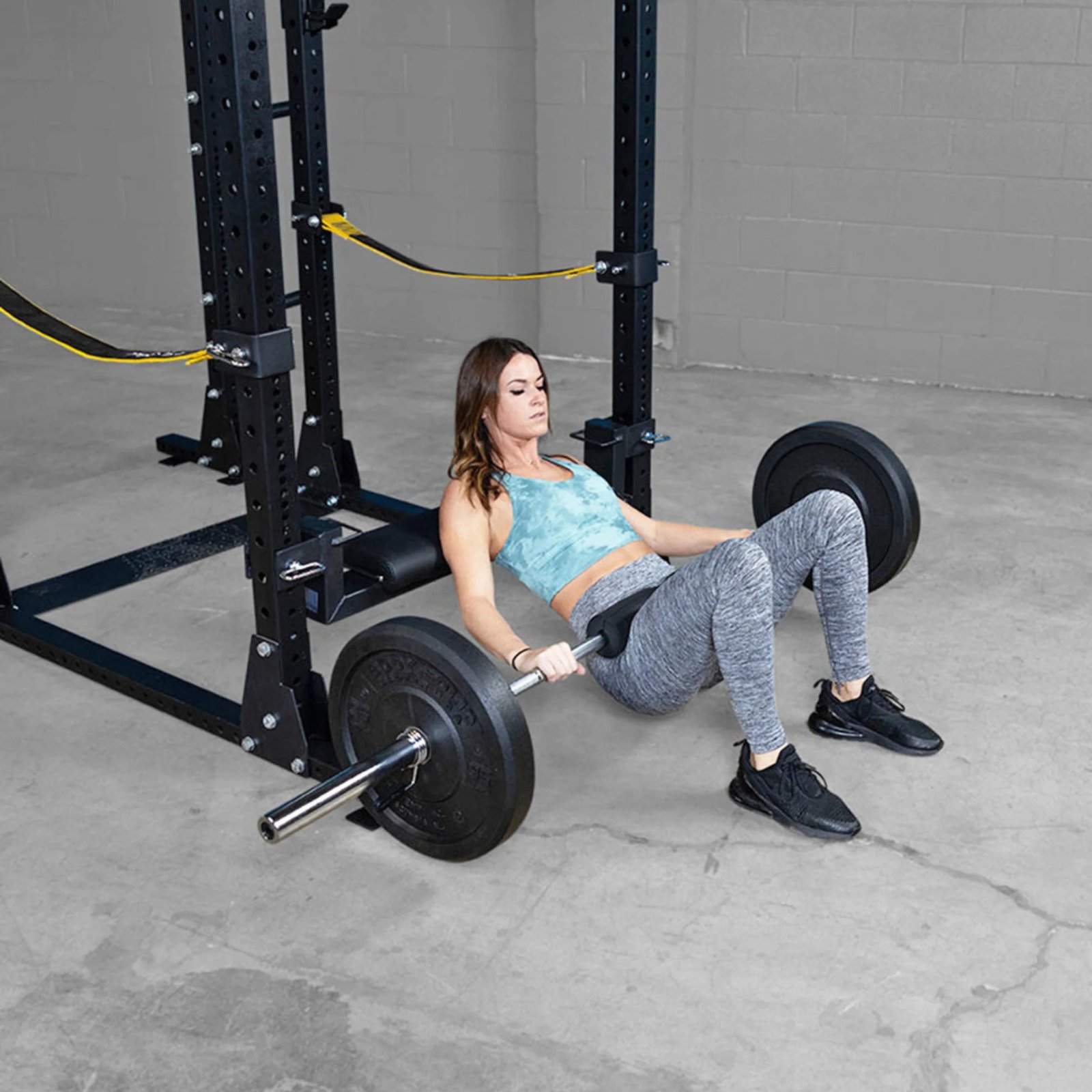 The Body-Solid Pro Clubline Hip Thruster Attachment is a rack attachment that focuses solely on an exercise that has recently exploded in popularity: hip thrusts. The hip thrust movement builds strength, size, and stability in the glutes, hamstrings, and quads.