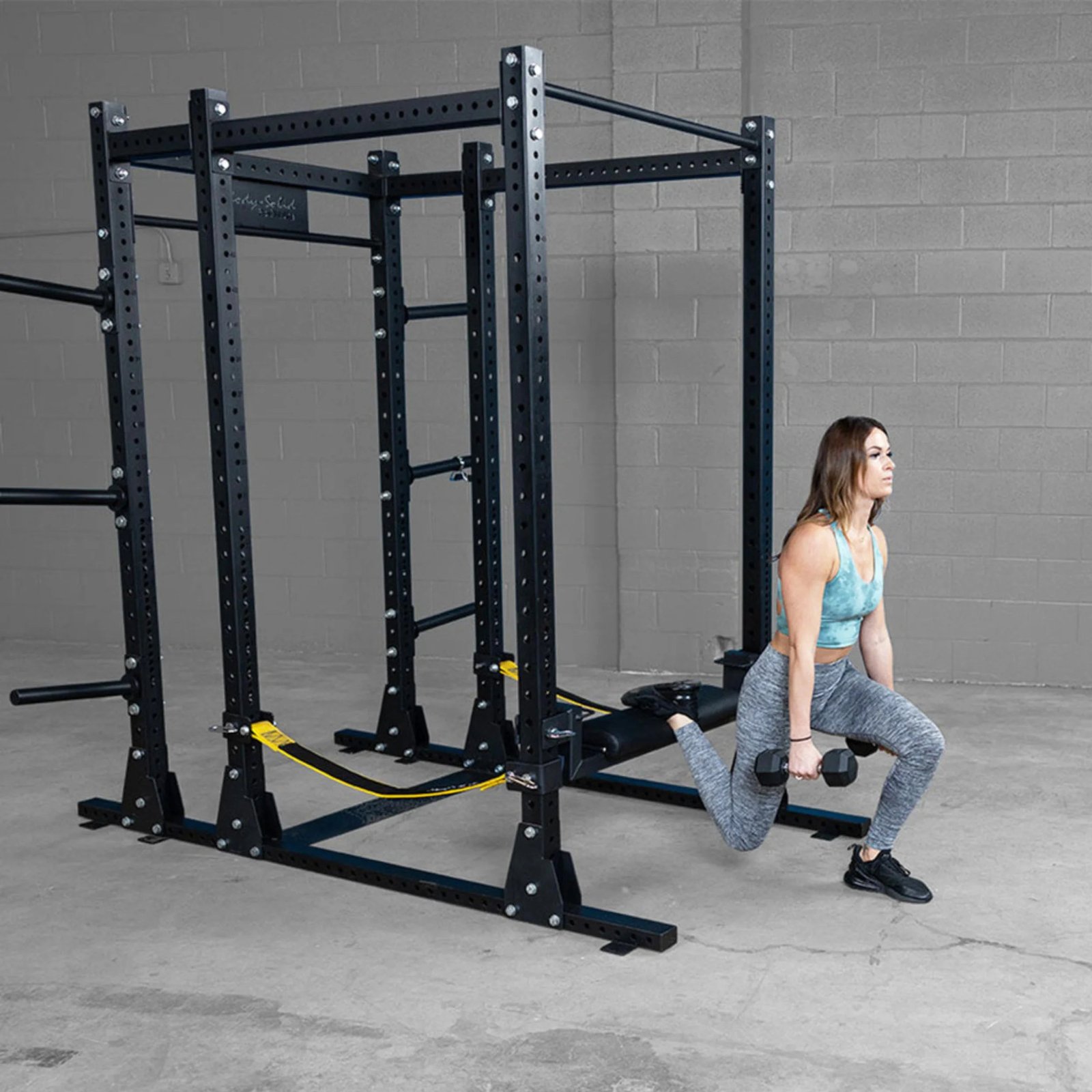 The SPRHT Hip Thruster Attachment is compatible with several Body-Solid racks, including the SPR250 Squat Stand, SPR500 Half Rack, SPR1000 Power Rack and GPR400 Power Rack.