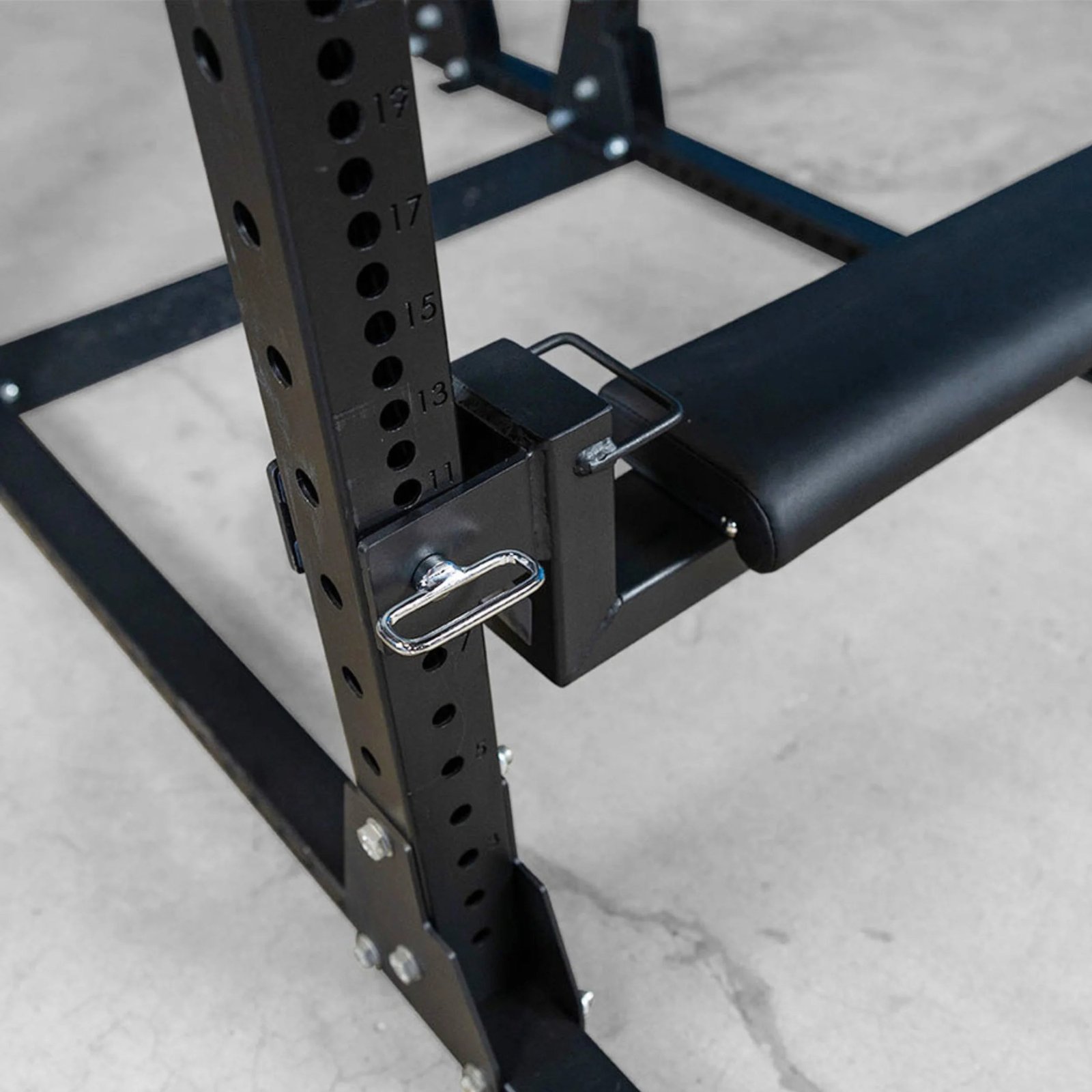 The Hip Thruster Attachment (SPRHT) features a thick, padded platform that gives users a comfortable, safe, stable, and efficient place to perform this effective movement. Body-Solid’s Pro Clubline Hip Thruster Attachment (SPRHT) ships fully assembled and attaches to rack uprights with a u-shaped frame and easy-grip pins for quick and straightforward installation.