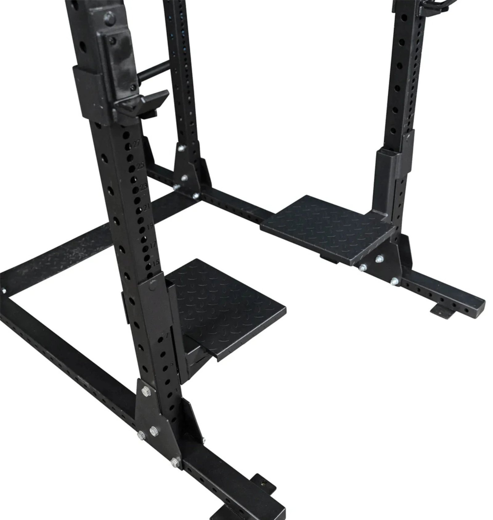 The SPRSP safely and securely attaches to Body-Solid’s SPR500 and SPR1000 3×3″ 11-gauge steel uprights. With a weight capacity of 1000 lbs., the SPRSP will remain solid, safe, and stable even during heavy lifts. These platforms are fully-adjustable and allow users to customize the height depending on the spotter’s size and which lift is being performed.