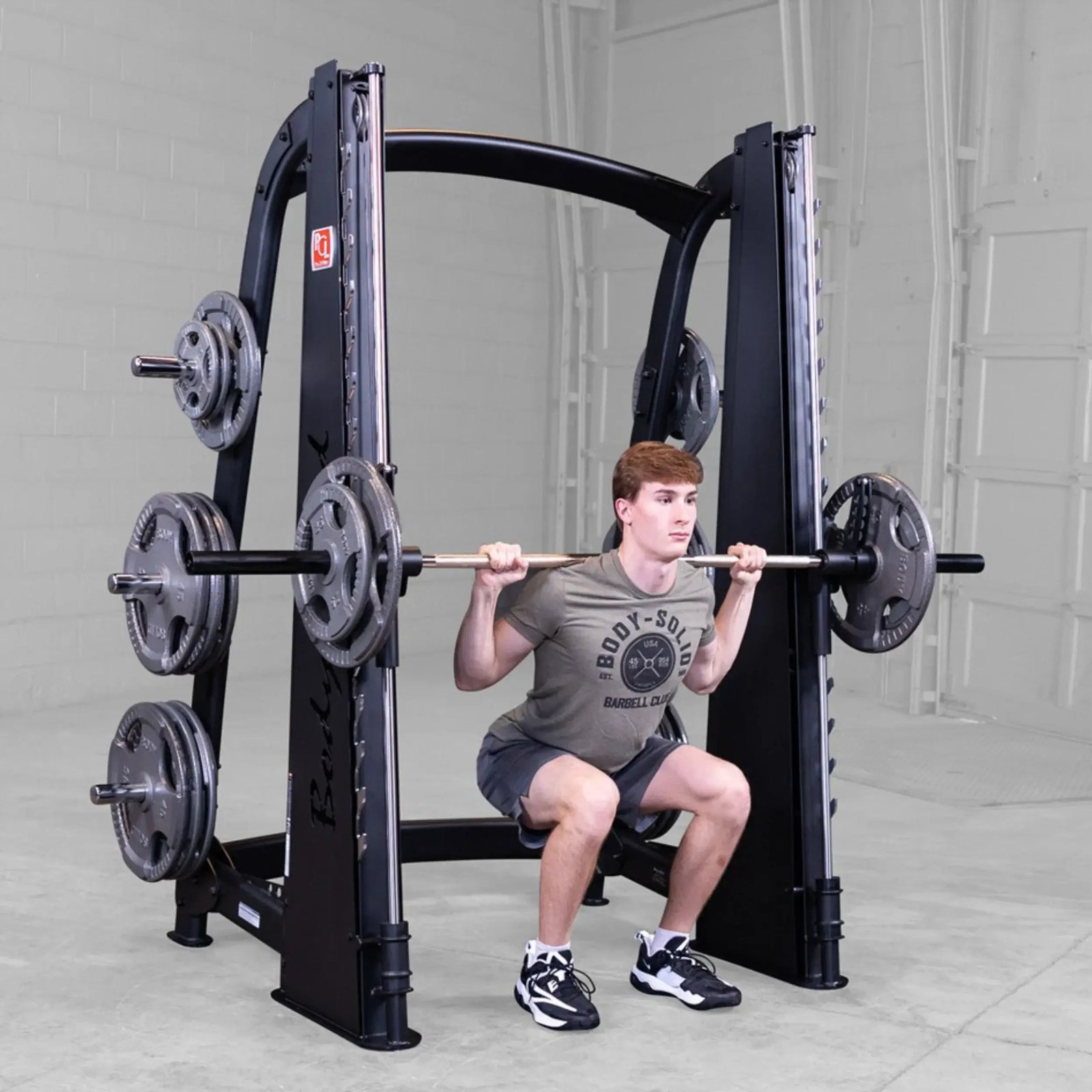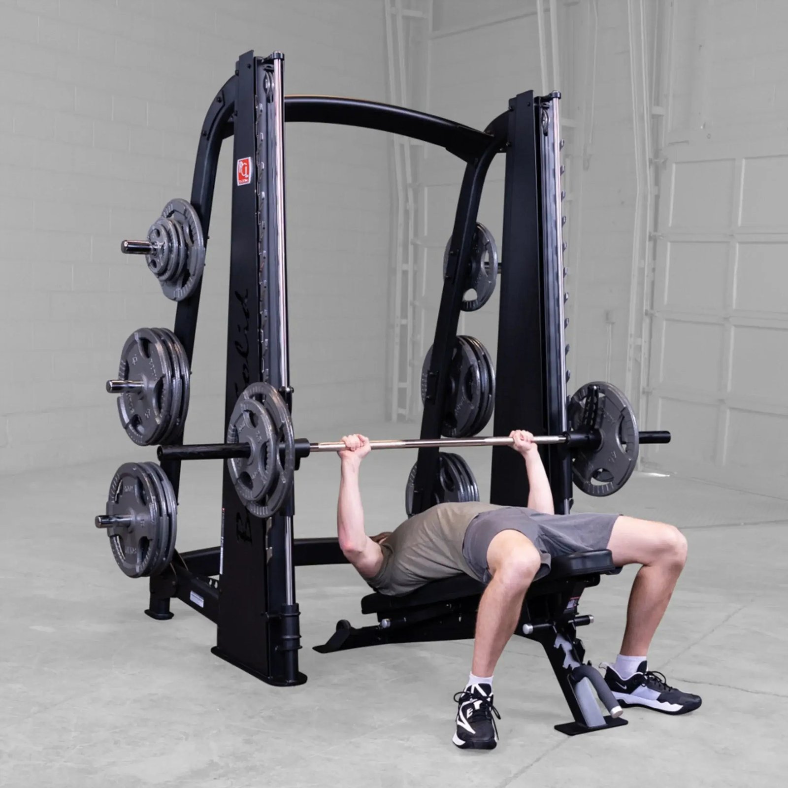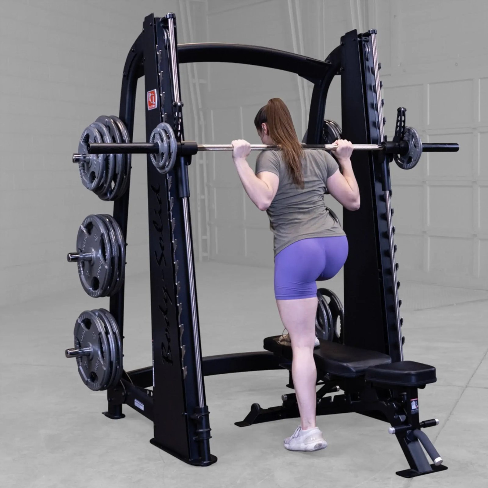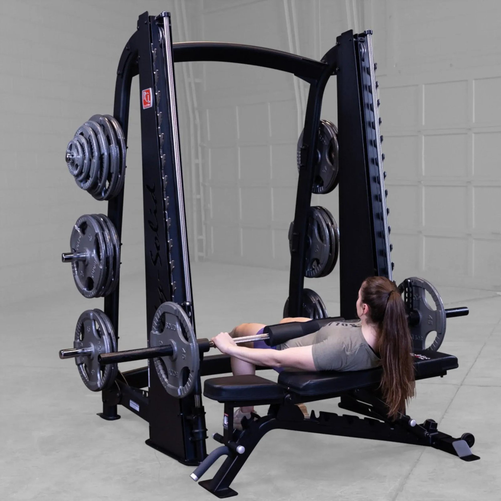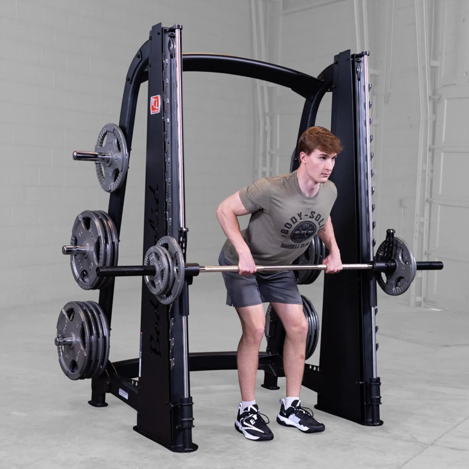 Featuring a reverse pitch and silky smooth vertical carriage, the Body-Solid Pro ClubLine Smith Machine ensures freedom of biomechanically correct movement, enabling users to perform a wide range of routines.