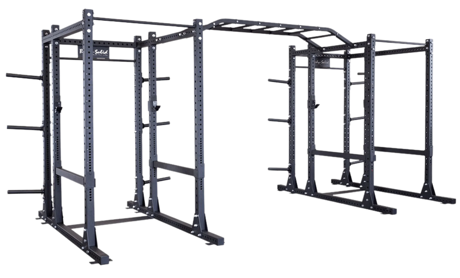 Body-Solid’s SPRMB monkey bar attachment bolts the two SPR1000 power racks together creating a perfect platform for multiple users or group exercise.