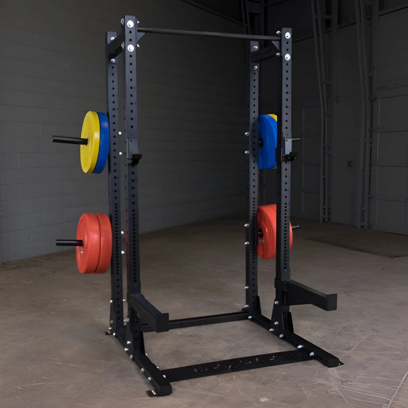 Body-Solid ProClub Line Commercial Extended Half Rack, the Body-Solid ProClub Line SPR500BACK Extended Commercial Half Rack is a full commercial half rack built for heavy weight training in any facility. The SPR500BACK Extended Commercial Half Rack is designed to excel in heavy use facilities like high schools, colleges and universities, police and fire departments, military facilities, sports performance training facilities, and any commercial gym or training studio.