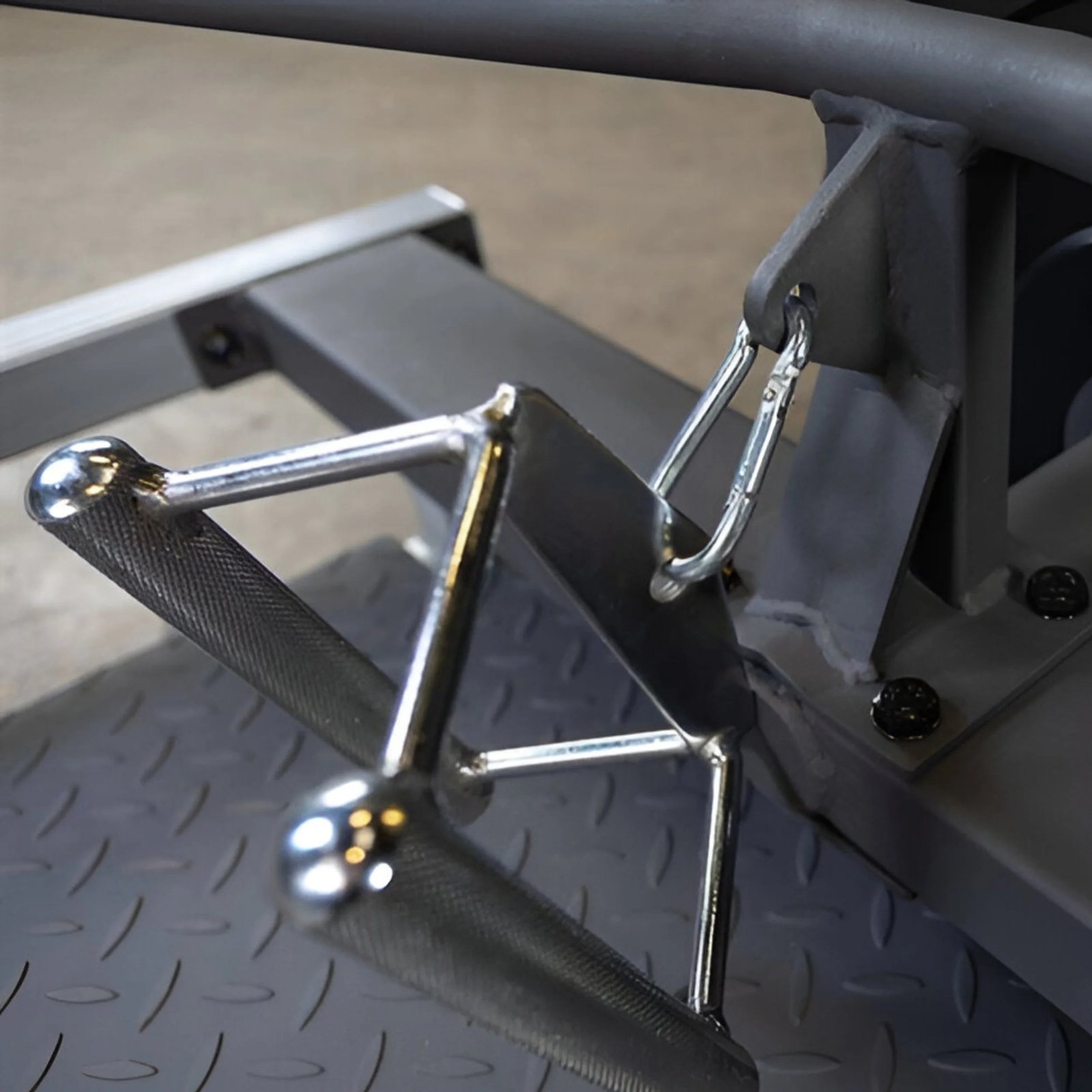 A premium, oversized diamond-plated footplate keeps users solid and stable throughout their workouts. A large Olympic weight horn allows for simple weight plate addition and removal. The STBR500 features a wide knurled bar with 16″ of knurl on each side for wide and close grip lifts. The machine also features an eyelet allowing full customization of the machine with any cable handle for near-unmatched workout versatility. The STBR500 is constructed with the commercial facility in mind and features a smooth rotation point at the back of the machine for consistent and precise returns on each movement.