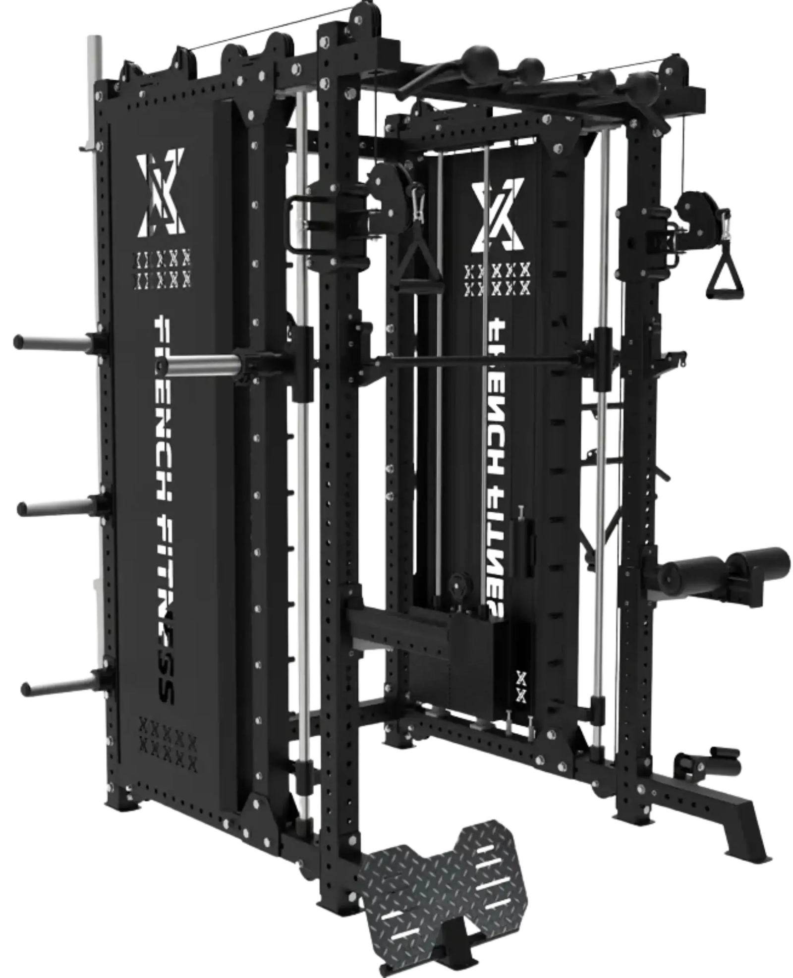 The French Fitness FSR100-CB Commercial Cable Smith Rack w/Counter Balance retains all the features of the French Fitness FSR100 Commercial Functional Smith Rack, providing a stable and secure platform for a wide range of weight training exercises. Our innovative counterbalance mechanism takes your workouts to new heights by lightening the barbell load during those tough initial reps, empowering you to conquer squats and more with confidence. Feel the difference as the counterbalance seamlessly adjusts as you lift, ensuring a fluid and natural range of motion. Unleash your potential with a Smith Rack that’s not just a machine, but a partner in your fitness success ‘ making every rep a stepping stone towards your goals!