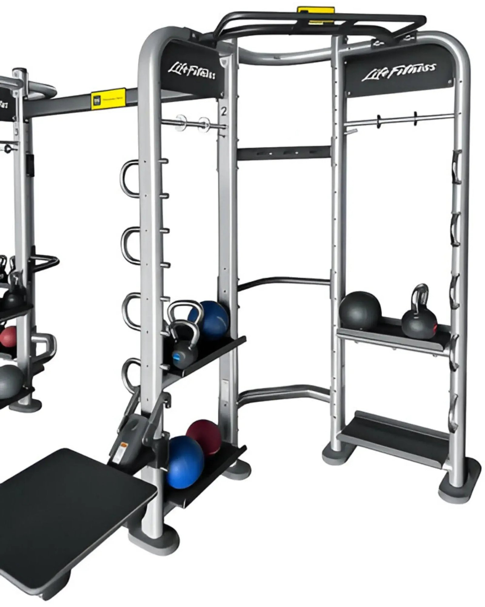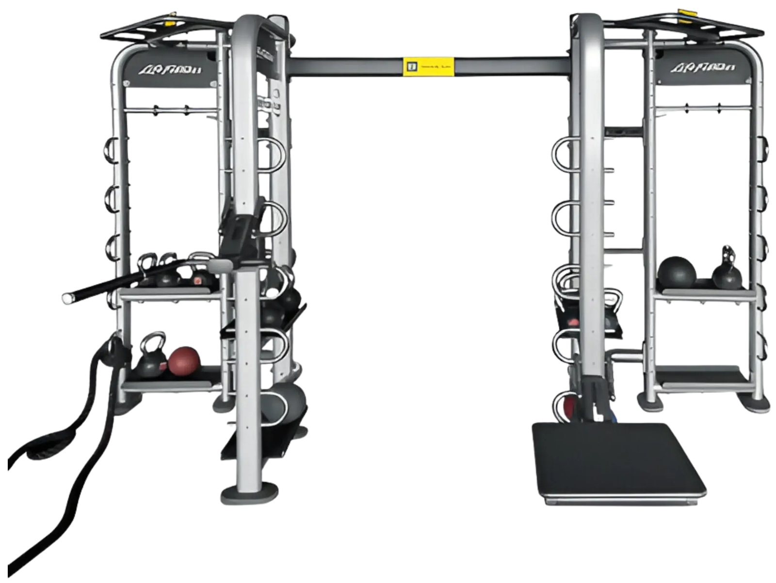 This Life Fitness SYNRGY configuration includes (2) two FXTF-UU units connected by a TRX connector, offering users the flexibility to engage in a wide range of exercises. Additionally, it provides ample space for storing accessories and customizing workouts. The presence of two u-link adjustment columns allows for the attachment of platforms, dip handles, and other exercise equipment. Constructed from 11-gauge steel frame, this ensures optimal structural integrity, with each frame meticulously coated in electrostatic powder for maximum adhesion and durability.